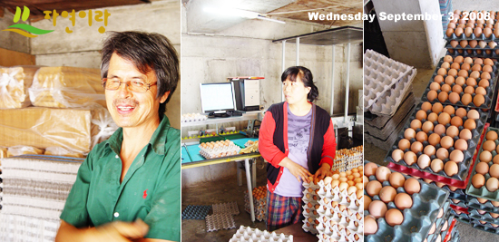 흘미 농장으로 가는 길에 LAC 오정택 사장님께서 "[전설의 고향]에서 '옛날 옛날 충청북도 어느 산골에...'라고 시작하던 배경을 괴산이라고 생각하면 된다" 라고 말씀하셨어요. 그 이야기 후 바로 어느 산 코너를 도는데 아래의 풍경이 펼쳐 졌어요. ![]() 하늘에 무시무시한 구름이 산뒤로 떠가고 있었어요. ;;; 위의 풍경을 보는 순간... 왠지 저희가 [환상특급]을 타고 다른 세상으로 가는 기분이었어요. 흘미유정란/방사유정란을 만들어 내고 있는 충북 괴산군 청안면 백봉은 곧 저희 눈앞에 펼쳐 졌어요. (네비게이터가 말했죠. "목적지 부근입니다") "우와- 닭들이 막 돌아다닌다. 신기하다. +_+ 엇! 저 닭은 알을 품고 있나?"라고 물었더니 쫒겨 나왔거나 자기가 나온 닭들이라고 했어요. 저렇게 한번 나온 녀석들은 따로 우리를 만들어서 닭장에 들어가야 한다고 했어요. (닭들이 돌아다니는 풍경이 한폭의 수묵담채화를 보는 느낌!) ![]() (닭장 속의 현장은 동영상으로 찍었어요. 곧 김흥완과장님께 파일 변환을 부탁드리고, 편집해서 올릴께요.) 유기사료 먹은 닭들은 건강하고 활동성이 좋다고 했어요. 닭들이 그런거 보면 사람도 같겠다 싶었어요. 흘미농장은 AI 피해가 한번도 없었던 농가라고 해요. 달걀 생산 환경 청정해서 그렇데요. 산이 둘러 싸여져 있고, 큰 고개를 두개를 넘어야 접근이 가능하고 양계단지가 조성이 되어 있지 않기 때문에 청결한 관리가 더욱 잘 된다고 하셨어요. ![]() [흘미농장]의 김명호 대표님은 고집있는 분이시라고 했어요. 운영자는 처음 뵈서 그런지 그냥 느낌에 멋쟁이시다. 젊은 시절 인기가 많으셨겠다. 사모님이 젊으시다. 젊은 사모님과 함께 사는 능력자!라는 생각이 들었어요. (대표님과 사모님께서 얼마나 차이나시는지 몰라요. 그냥 운영자의 추측일 뿐;;;) 장성한 아드님을 잠깐 뵈었는데... 부모님을 쏙 닮은 것 같았어요. [흘미농장]은 산이 둘러 싸 주고 있는 깊은 산속의 보물과 같은 장소에 있었고, 신기하게도 그 속에 잘 갖춘 시스템이 우리의 유정란을 상품화 하시고 있었어요. 시스템에 대한 소개는 다시 올리려고 해요. 오늘은 흘미농장의 풍경을 몇컷 전하는 선에서 소개를 마무리 합니다. 드시고 있는 농산물을 어떤 분이 어떻게 기르시는지 궁금하시면 자연이랑의 웹진에 가끔 들려주세요. :) |