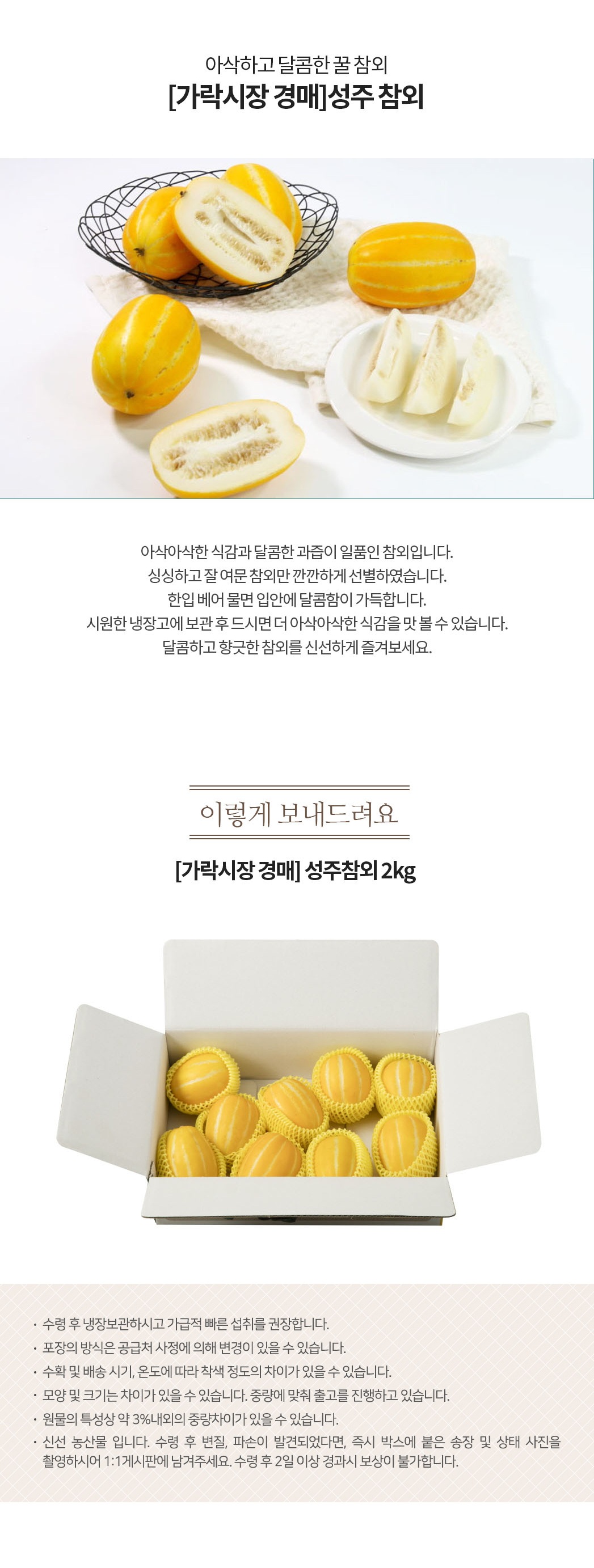품목또는명칭 [가락시장 경매] 성주참외 2kg(10과내)