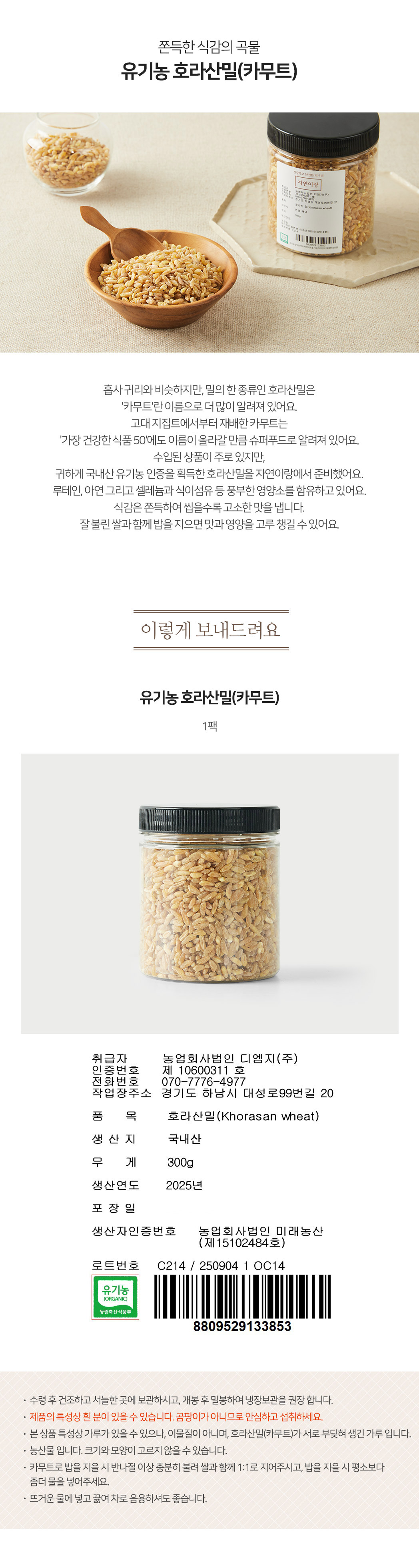 25년산/국내 유기농 재배한 카무트| 판매가격 | 5,500원 7,900원 |
