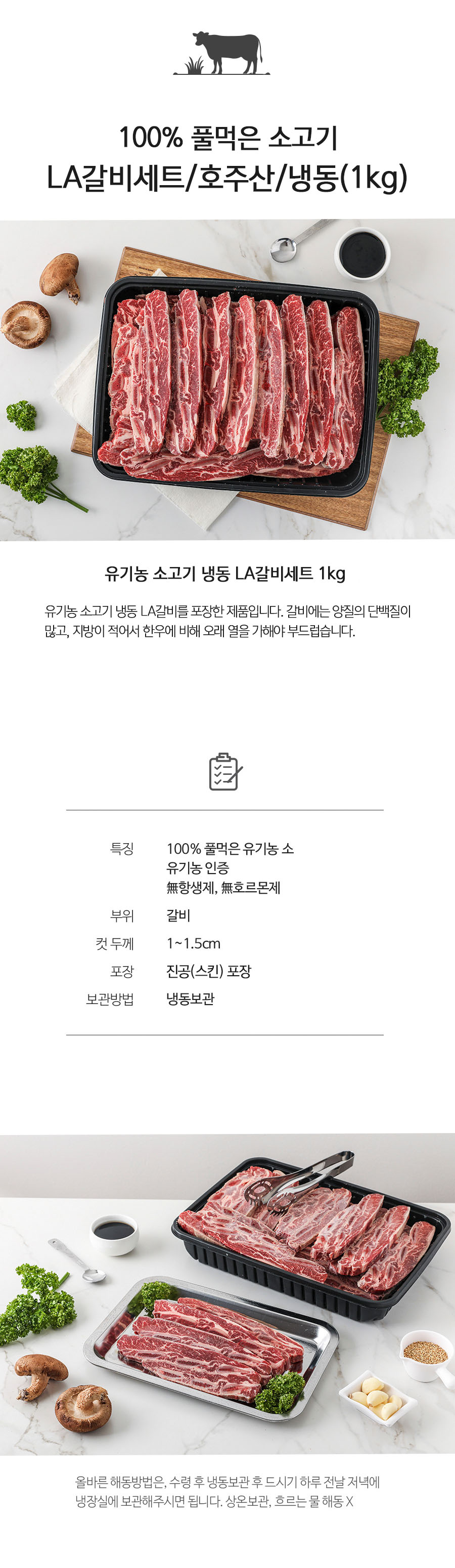 [호주목초우] 유기농 LA갈비 구이용 1kg(냉동)