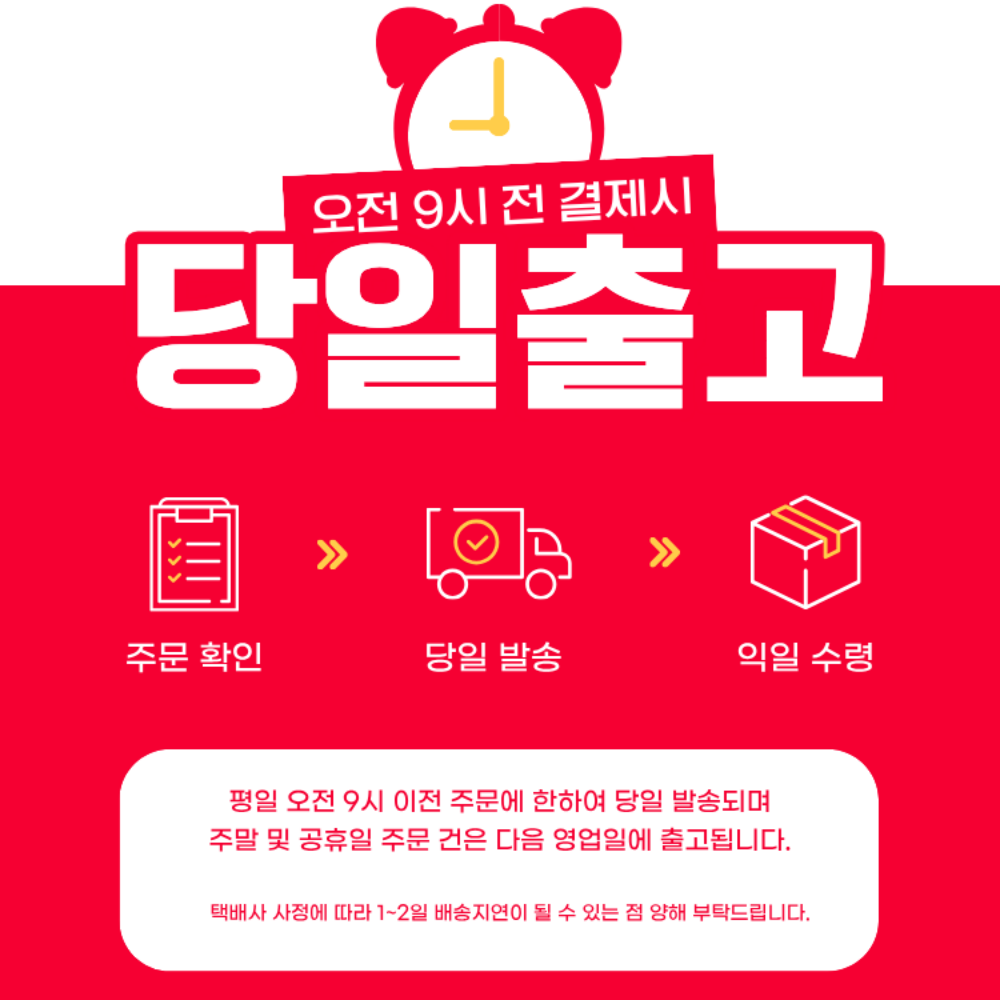 · 공휴일 전날은 출고 불가하며 당일 출고건은 다음날 배송됩니다.