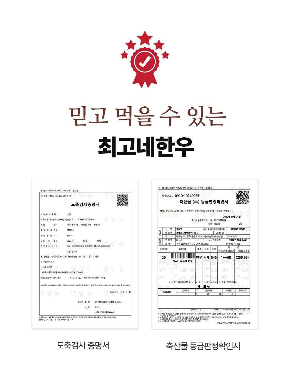 [최고네한우] 1++등급 특수부위 한우한판 400g+소스증정