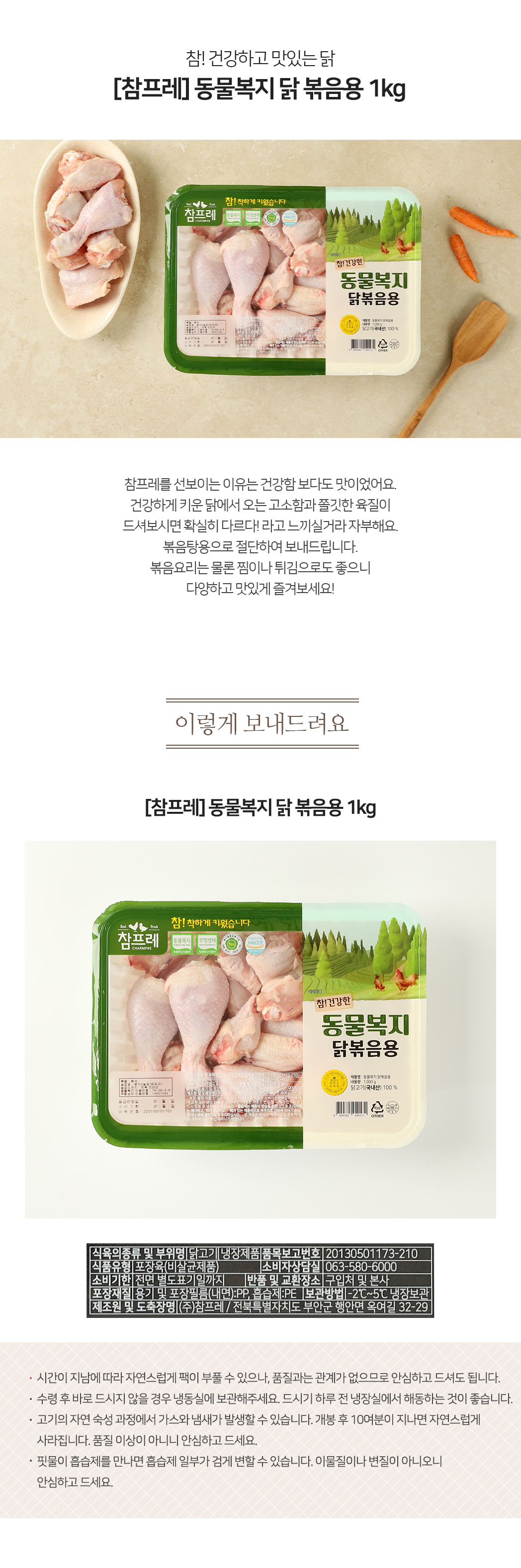 [참프레] 동물복지 닭 볶음용 1kg(냉장)