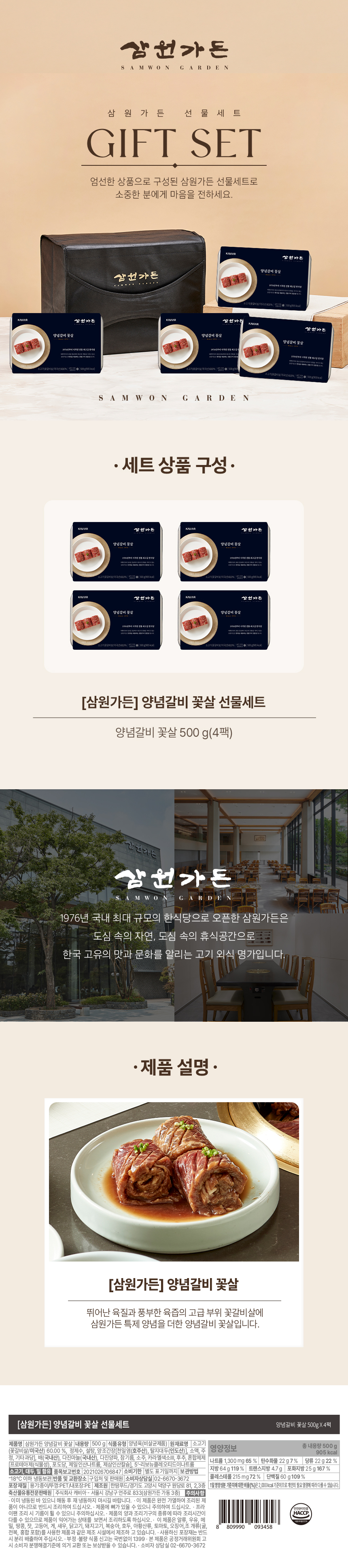 꽃갈비살만 엄선한 삼원가든 대표 선물세트| 판매가격 | 209,000원 239,000원 |