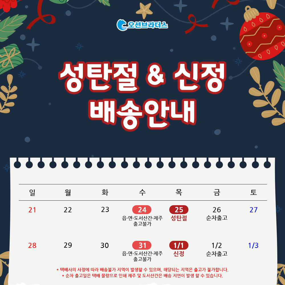 · 공휴일 전날은 출고 불가하며 당일 출고건은 다음날 배송됩니다.