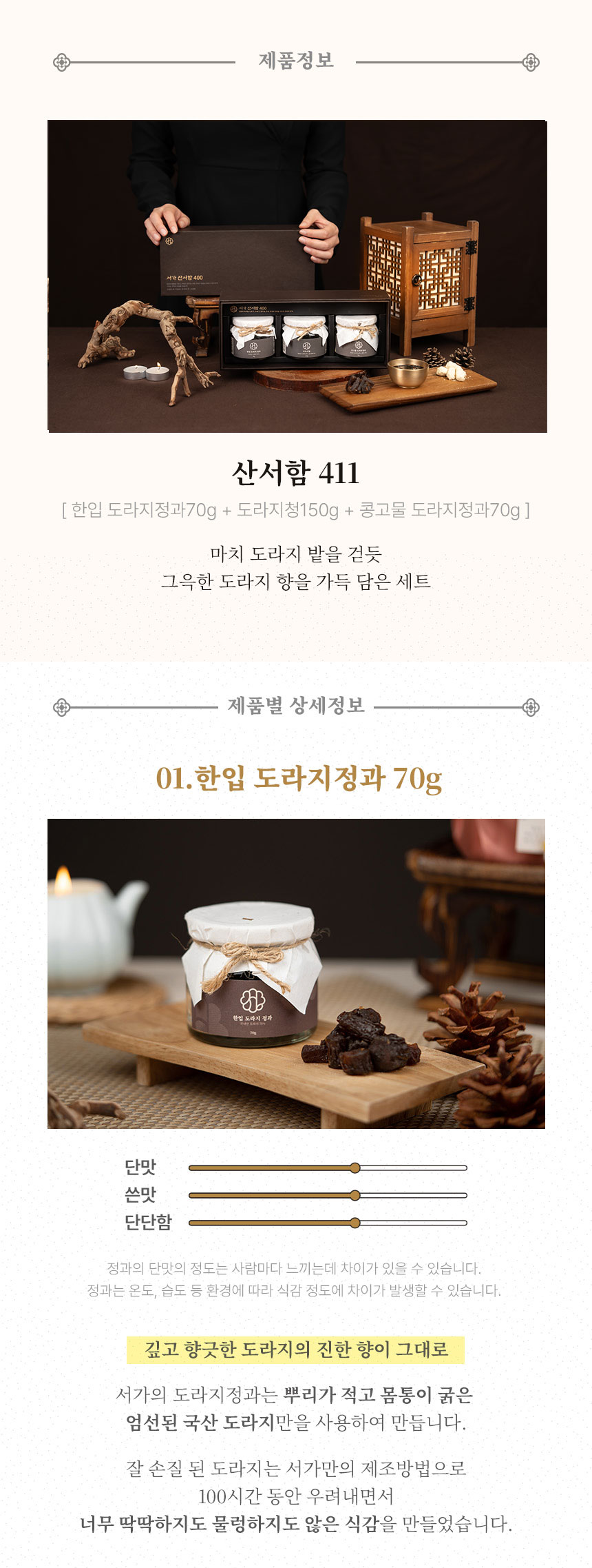 판매단위 한입 도라지정과 70g + 도라지청 150g + 콩고물 도라지정과 70g
