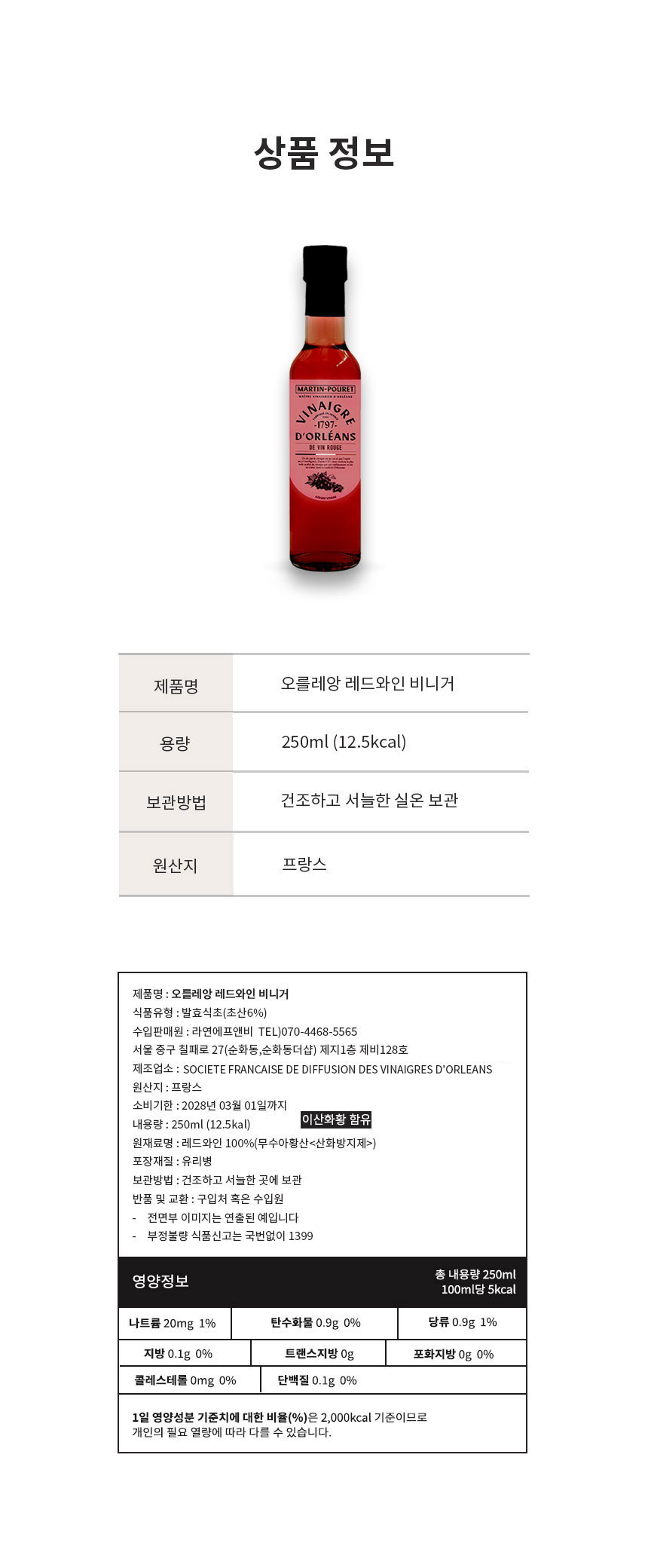 [프랑스정통] 마틴푸레 레드와인 비니거 250ml