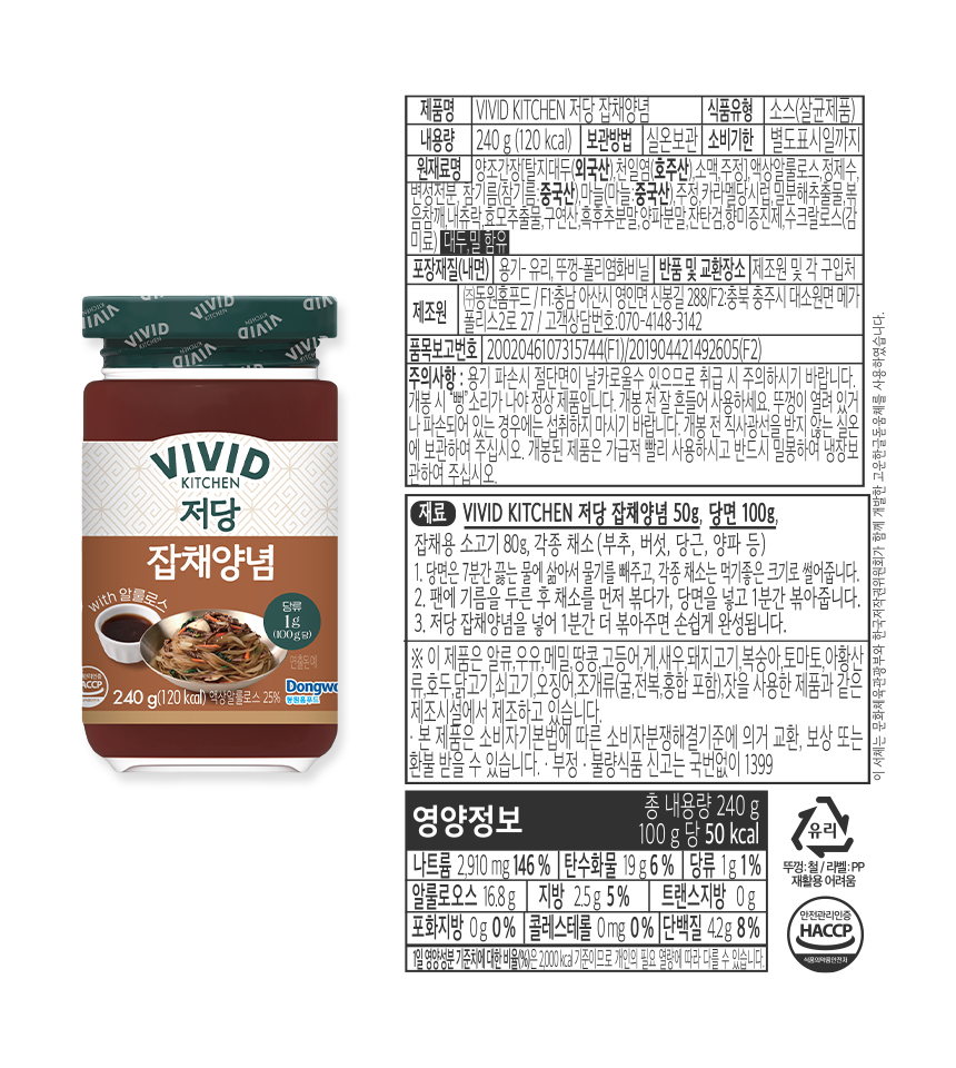 [비비드키친] 저당 잡채양념 240g