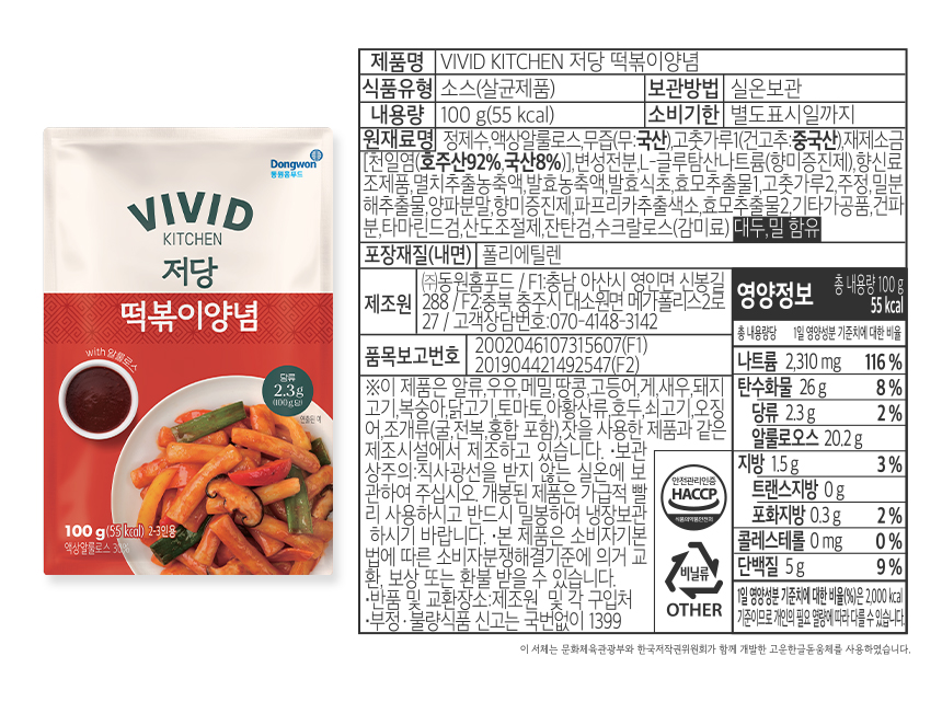 [비비드키친] 저당 떡볶이양념 100g