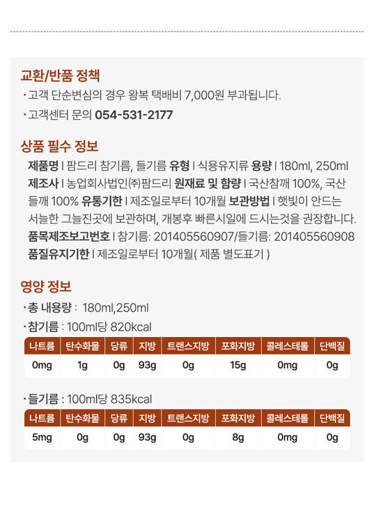 [팜드리] 국산 참기름 180ml/250ml (선물포장)