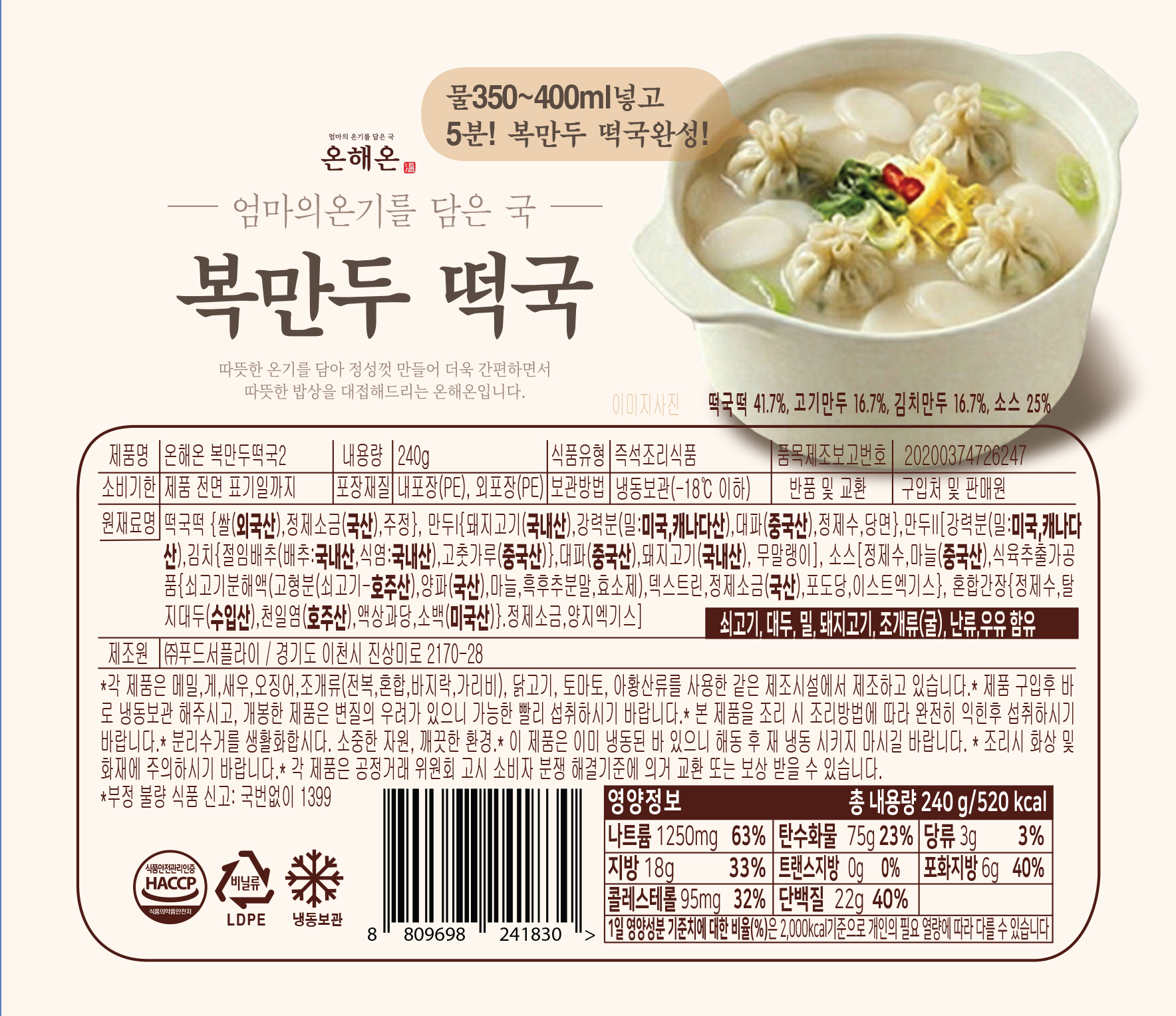 [온해온] 복만두떡국 240g