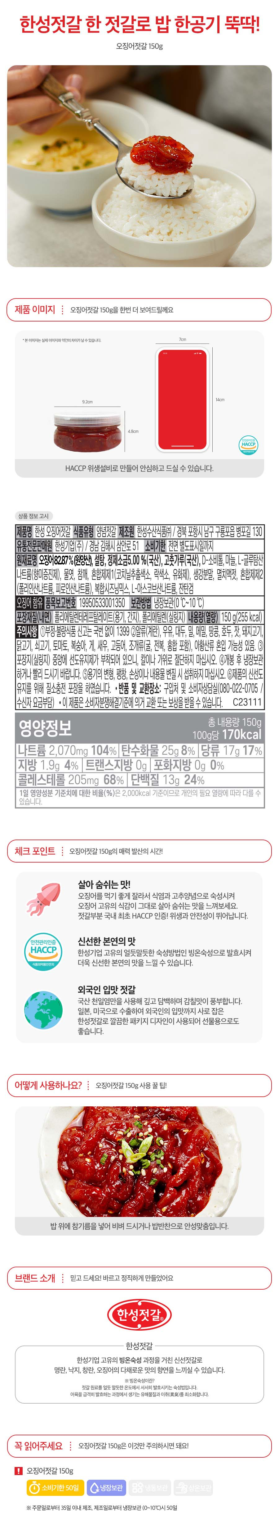 [한성] 오징어젓갈 150g(냉장)