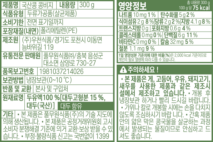 [풀무원] 국산콩 콩비지 300g