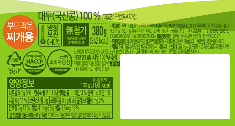 [풀무원] 특등급 국산콩 부드러운 찌개두부 380g
