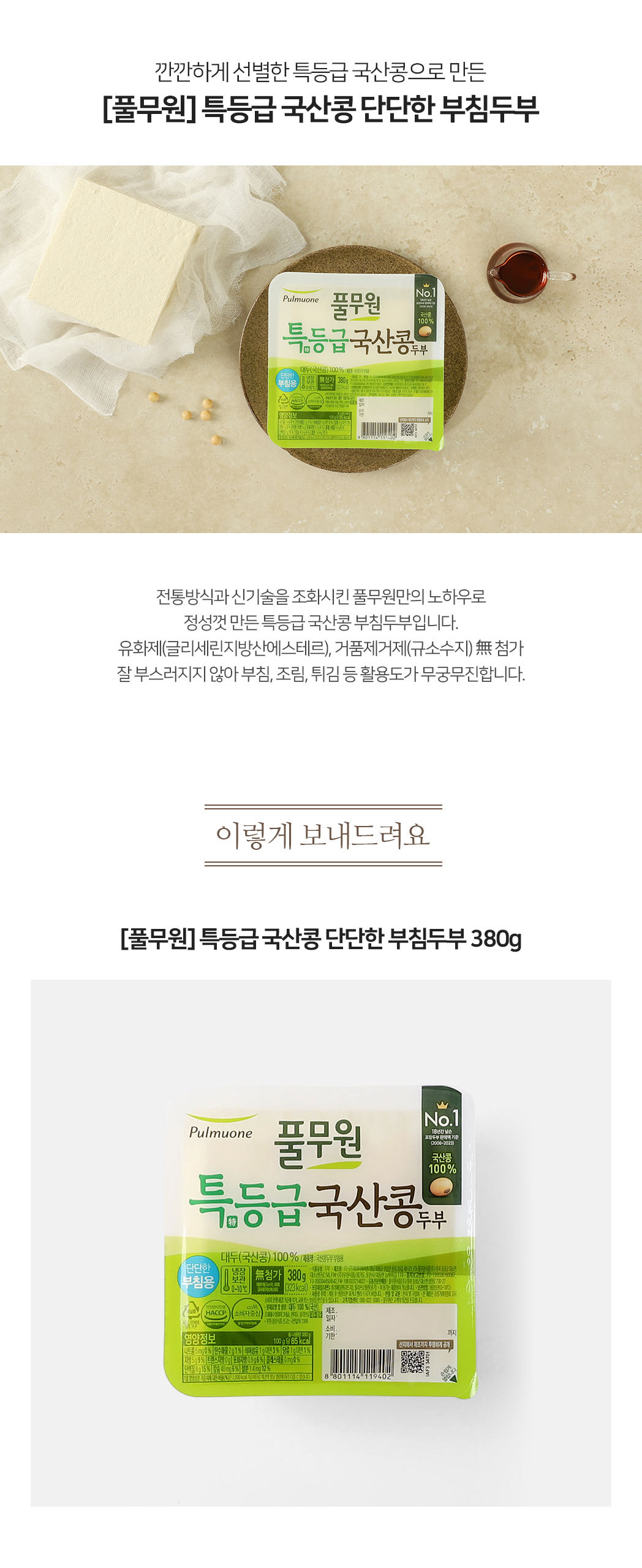 깐깐하게 선별한 특등급 국산콩으로 만든| 판매가격 | 3,800원 4,500원 ~ | |