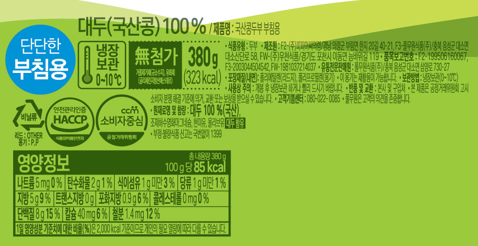 [풀무원] 특등급 국산콩 단단한 부침두부 380g