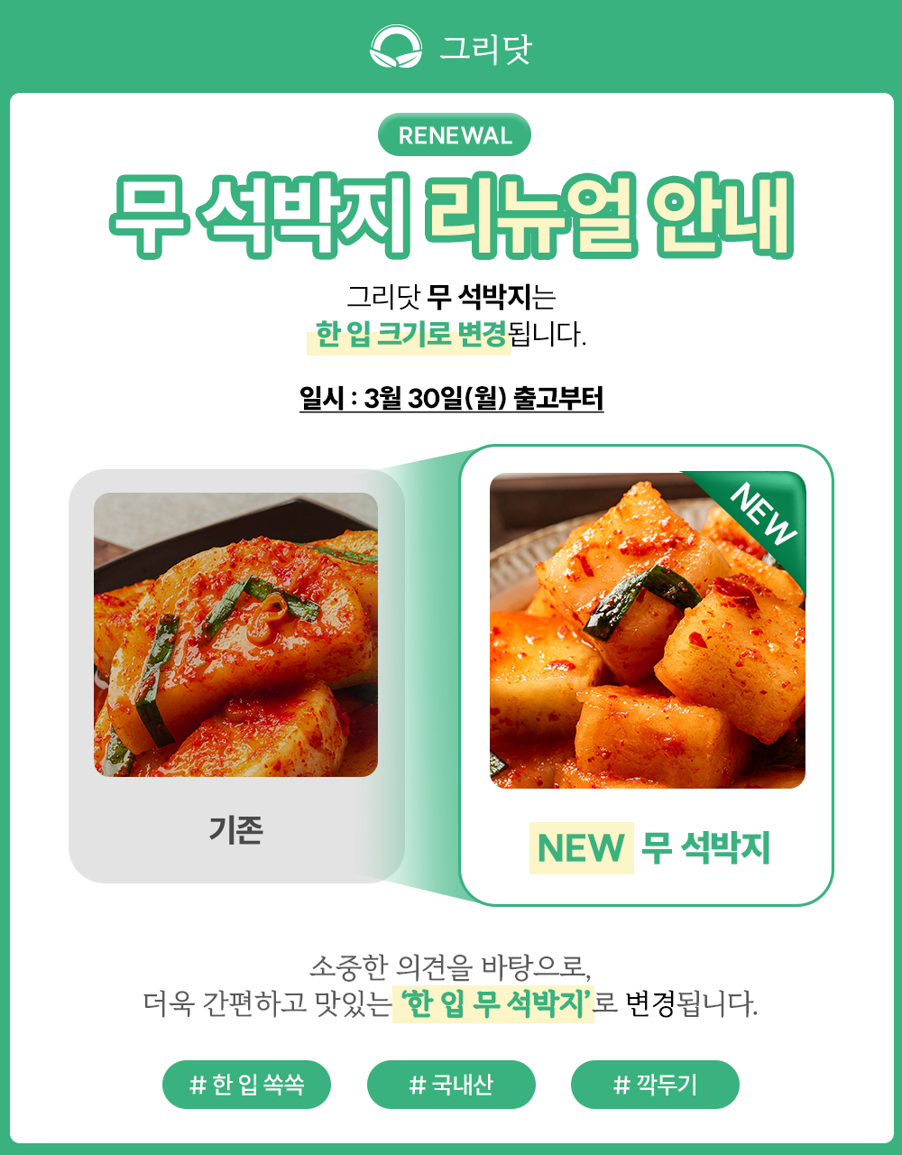 [그리닷] 국내산 섞박지 4kg(2kg+2kg)