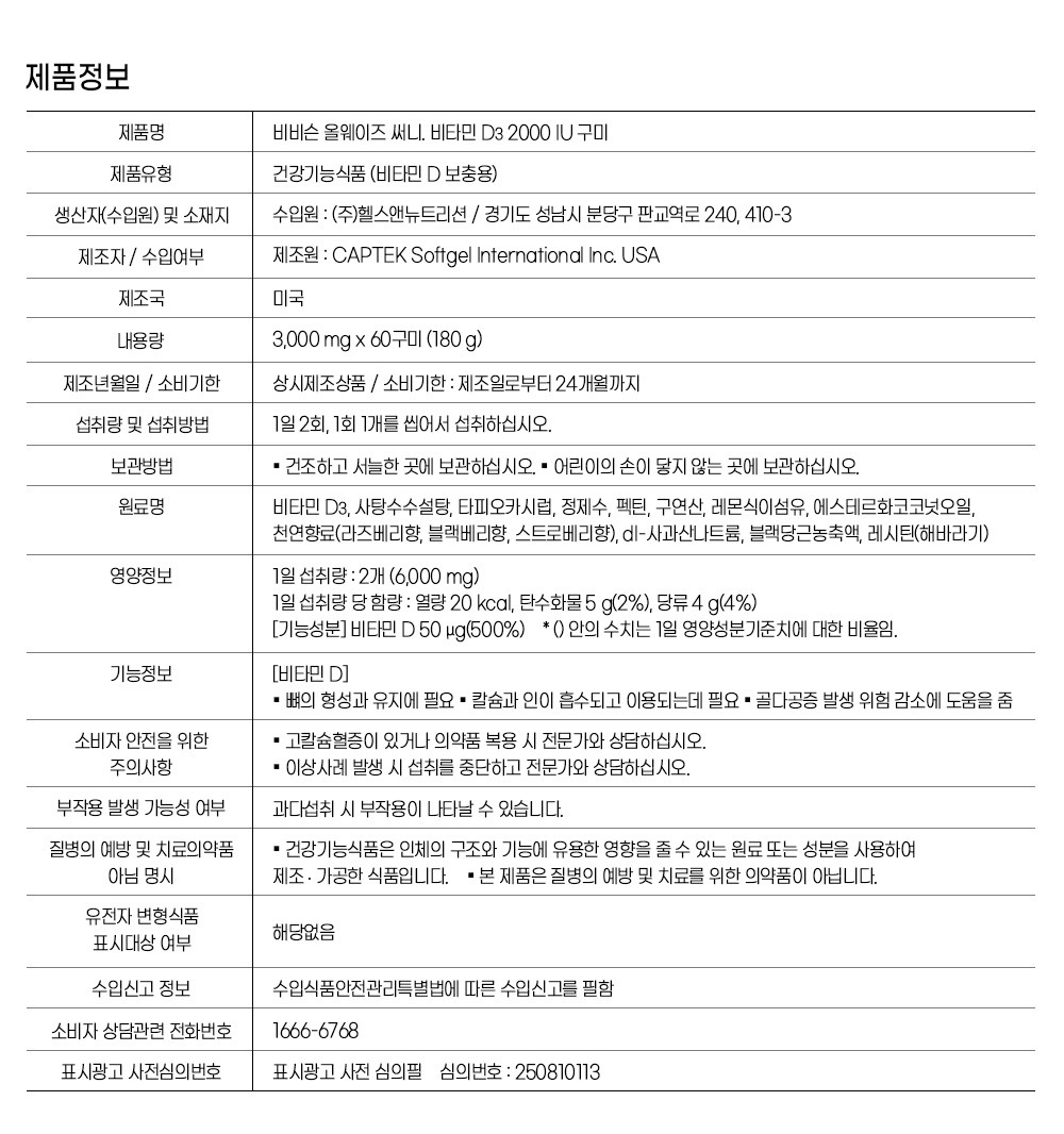[비비슨] 올웨이즈 써니 비타민D3 2000IU 구미 2병 +선물상자+쇼핑백