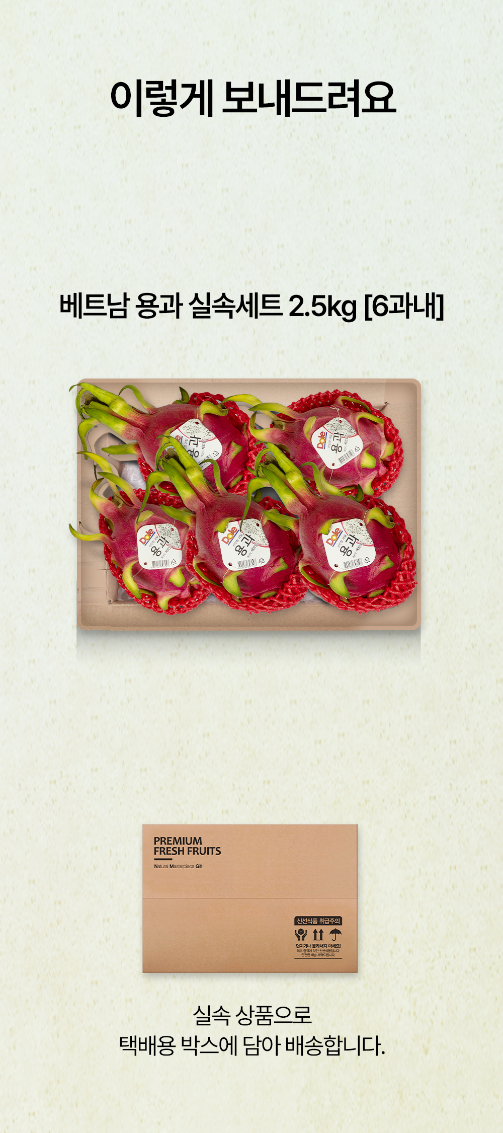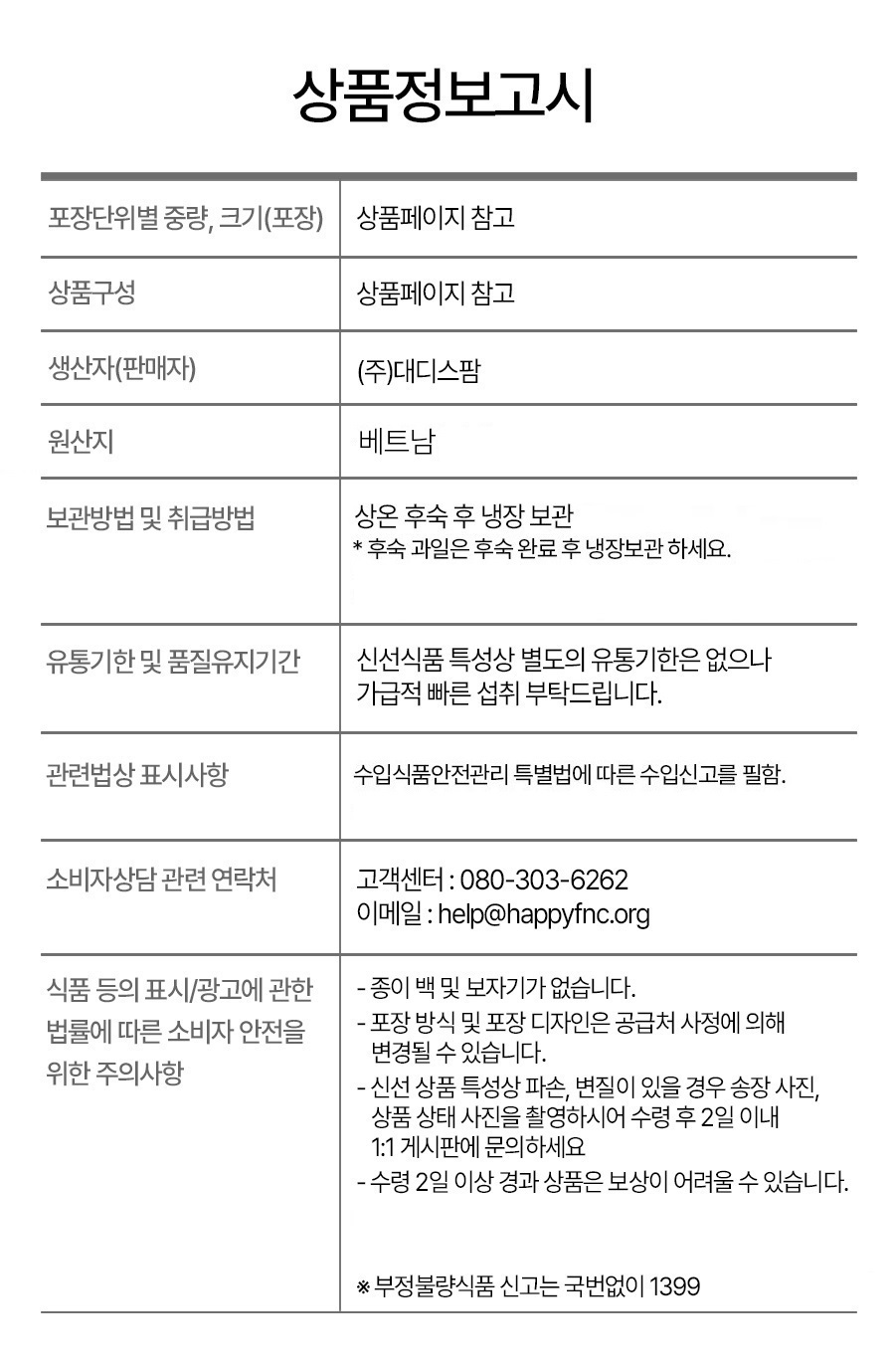 · 주의사항 - 일요일, 법정공휴일은 배송(도착)하지 않습니다. (명절 및 특수시즌 제외) - 배송지 정보와 받으시는 분의 장소 및 연락처가 불분명할 경우에는 배송이 지연될 수 있으며, 그로 인한 상품 변질에 대해서는 자연이랑이 책임지지 않습니다. |