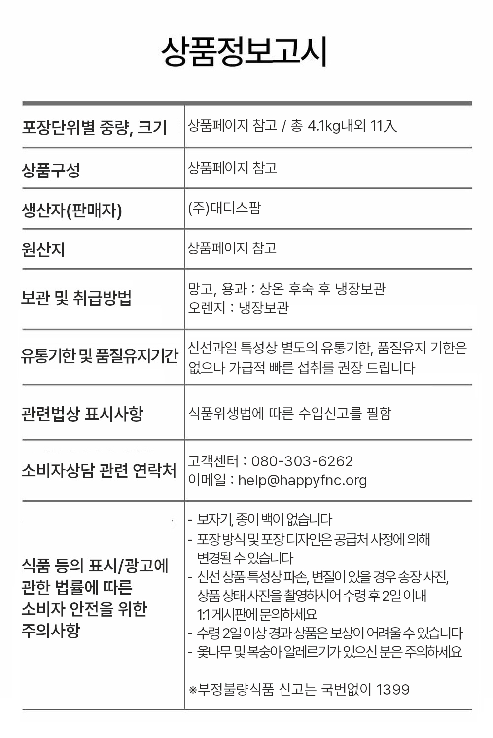 · 주의사항 - 일요일, 법정공휴일은 배송(도착)하지 않습니다. (명절 및 특수시즌 제외) - 배송지 정보와 받으시는 분의 장소 및 연락처가 불분명할 경우에는 배송이 지연될 수 있으며, 그로 인한 상품 변질에 대해서는 자연이랑이 책임지지 않습니다. |