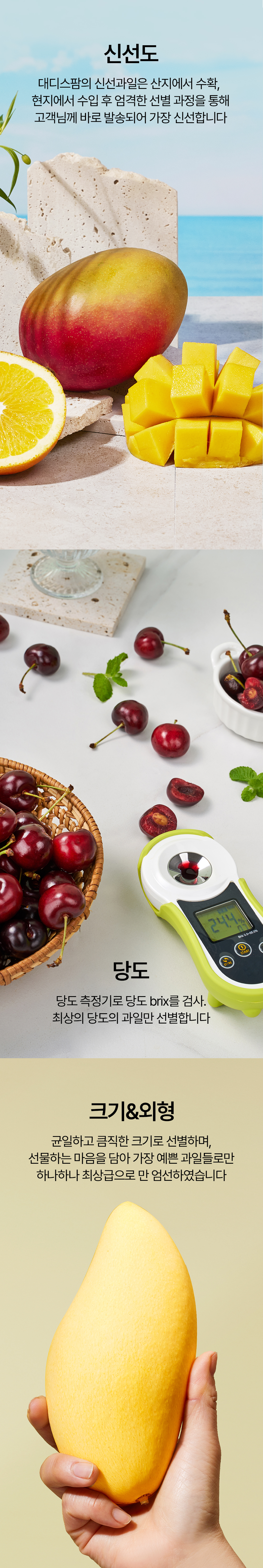 | 판매단위 | 1.2kg내외[망고 2입(1과/375g내외), 체리 500g)] | |