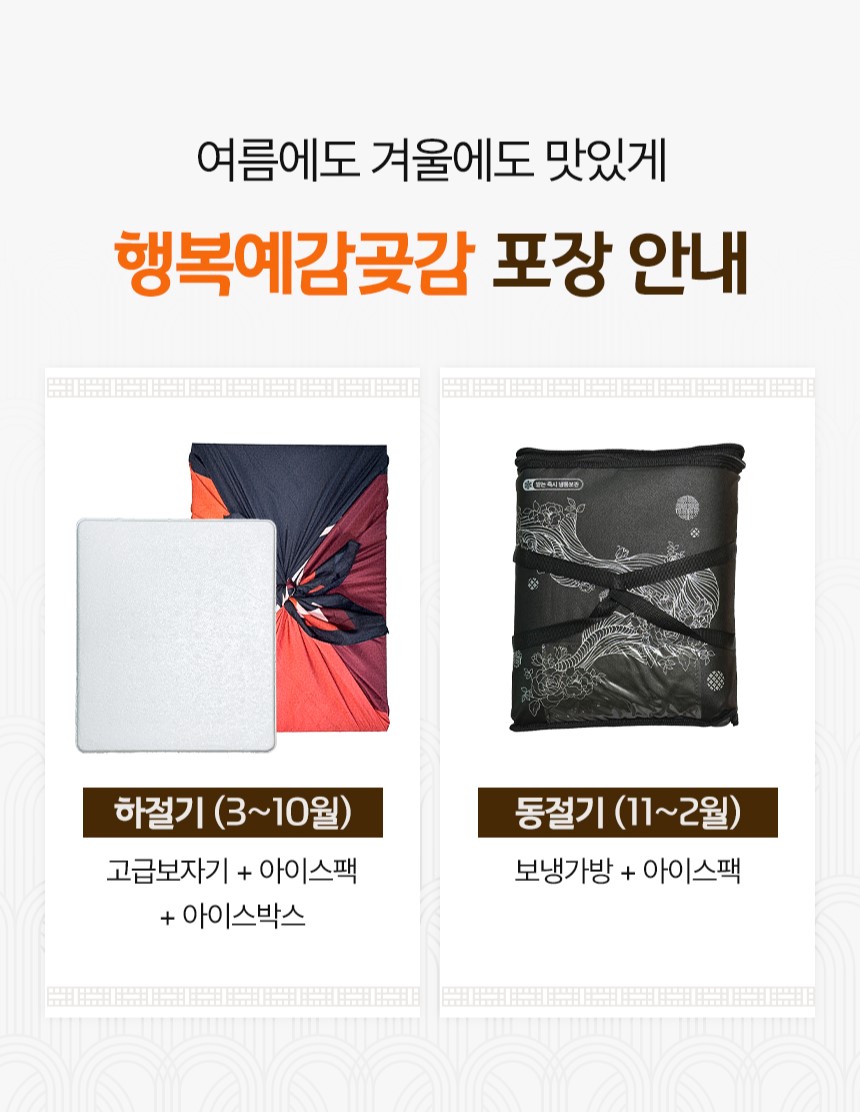 | 판매단위 | 1.6kg(30~42입)+선물포장[보자기 or 부직포백] |