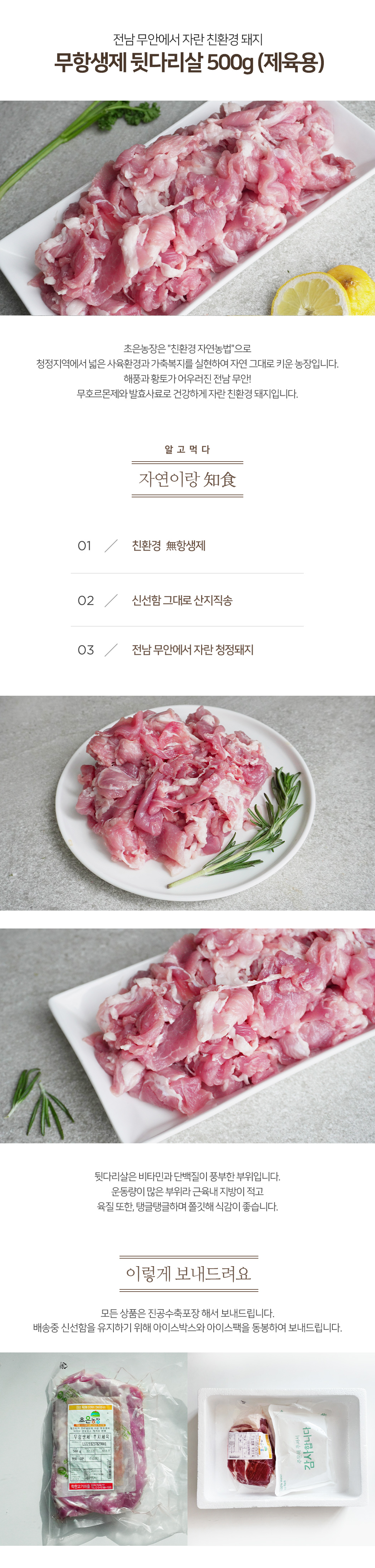 전남 무안 무항생제 뒷다리살 500g(제육용)