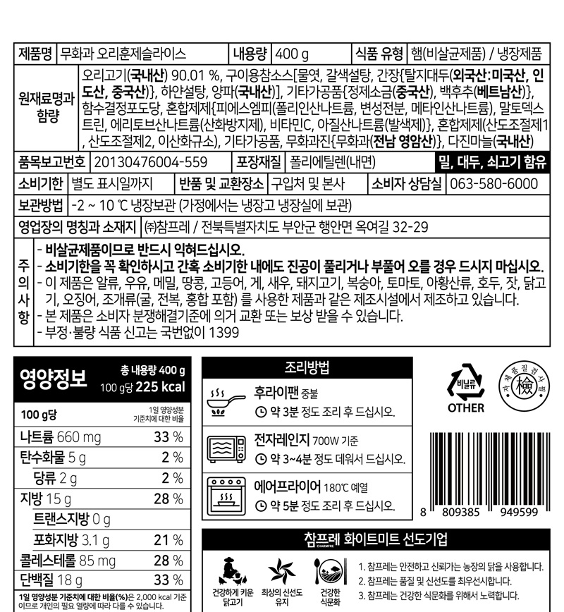 [참프레] 무화과 오리 훈제 슬라이스 400g