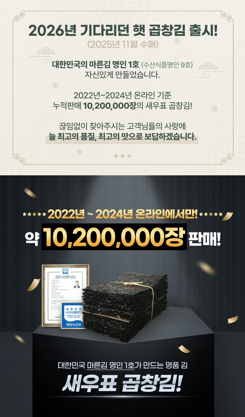 ★26년 햇김★새우표 완도 프리미엄 곱창김 100매