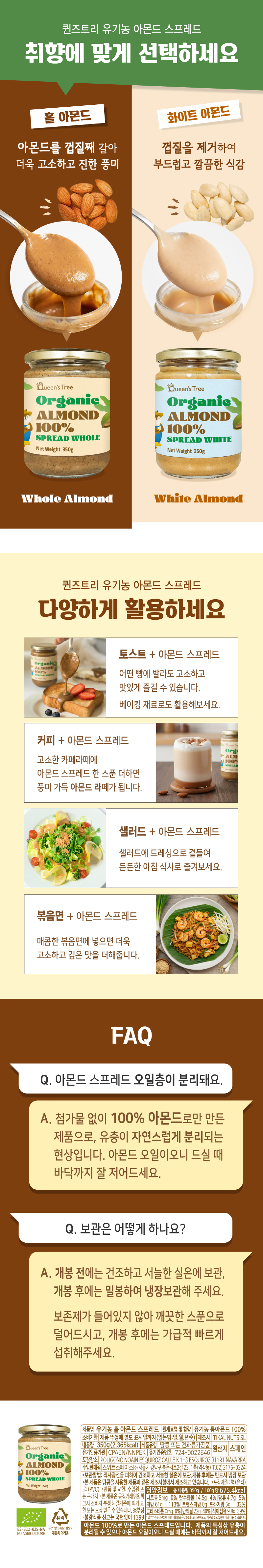 [퀸즈트리] 유기농 홀 아몬드 스프레드