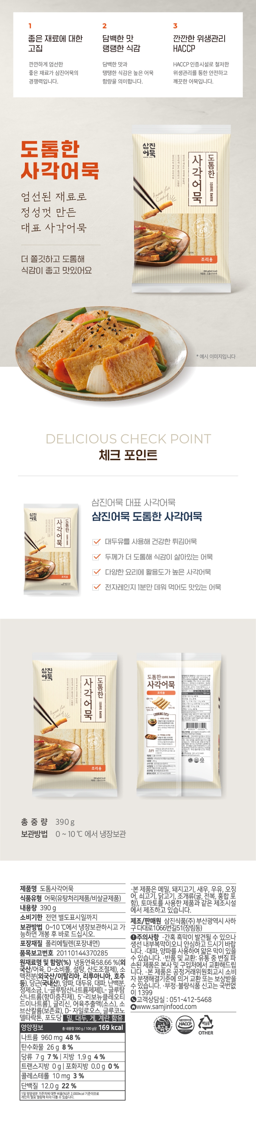 [삼진어묵] 도톰한 사각어묵 390g