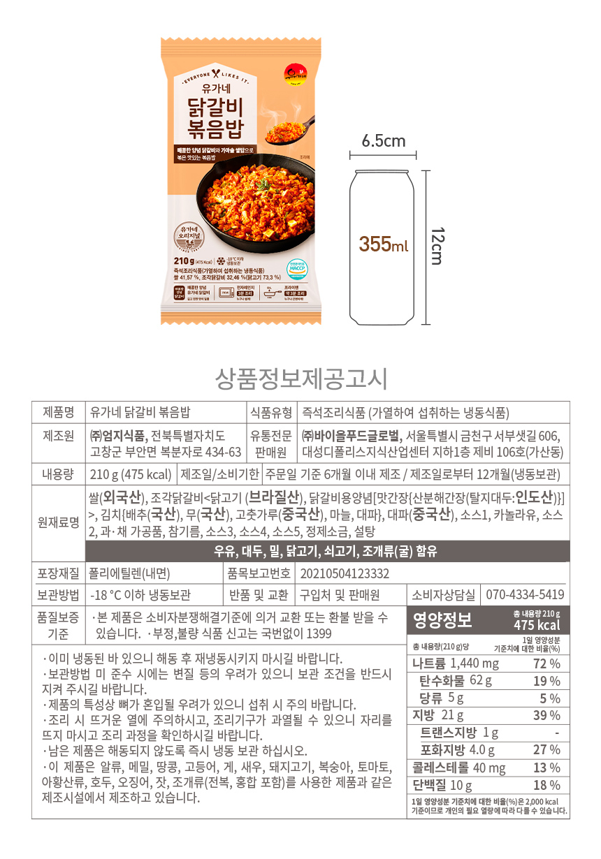[유가네] 닭갈비 볶음밥 210g x 3팩