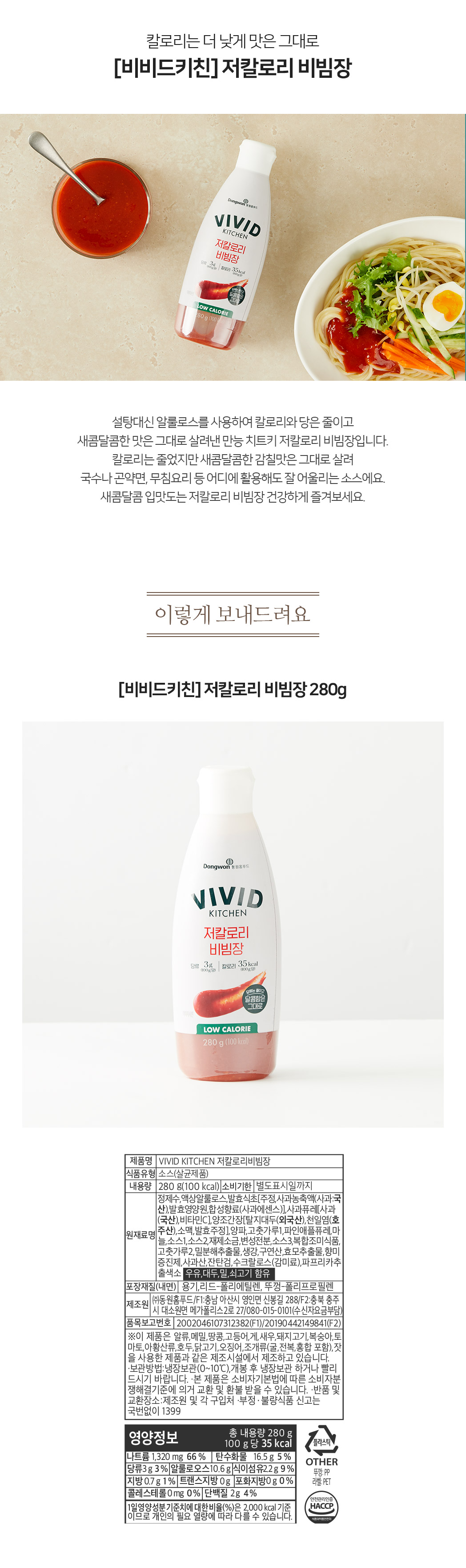 [비비드키친] 저칼로리 비빔장 280g