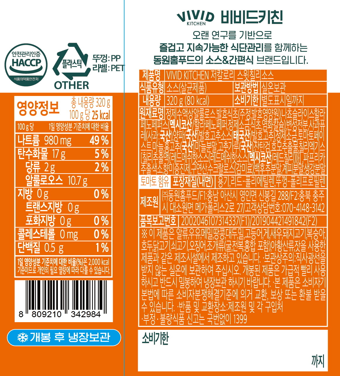 [비비드키친] 저칼로리 스윗칠리소스 320g