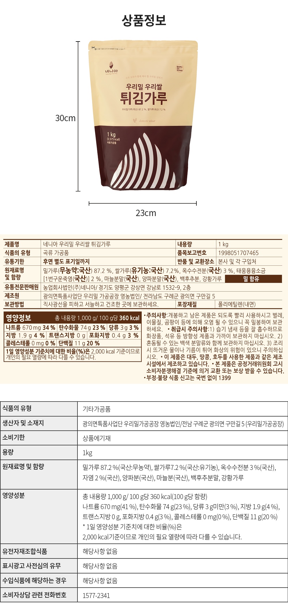 [네니아] 우리밀 우리쌀 튀김가루 1kg