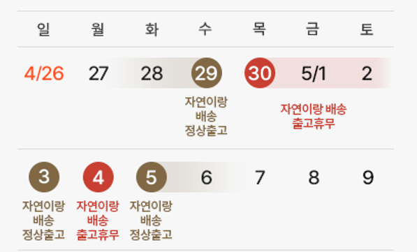 <자연이랑배송 5월 노동절 및 어린이날 배송안내>