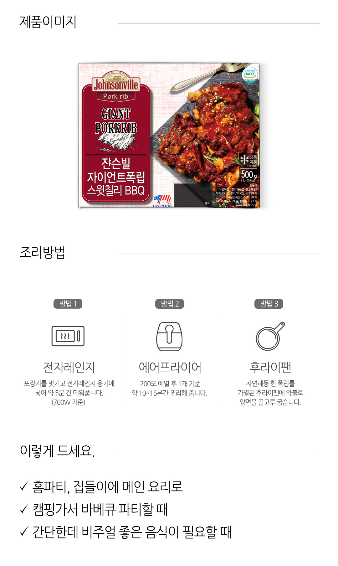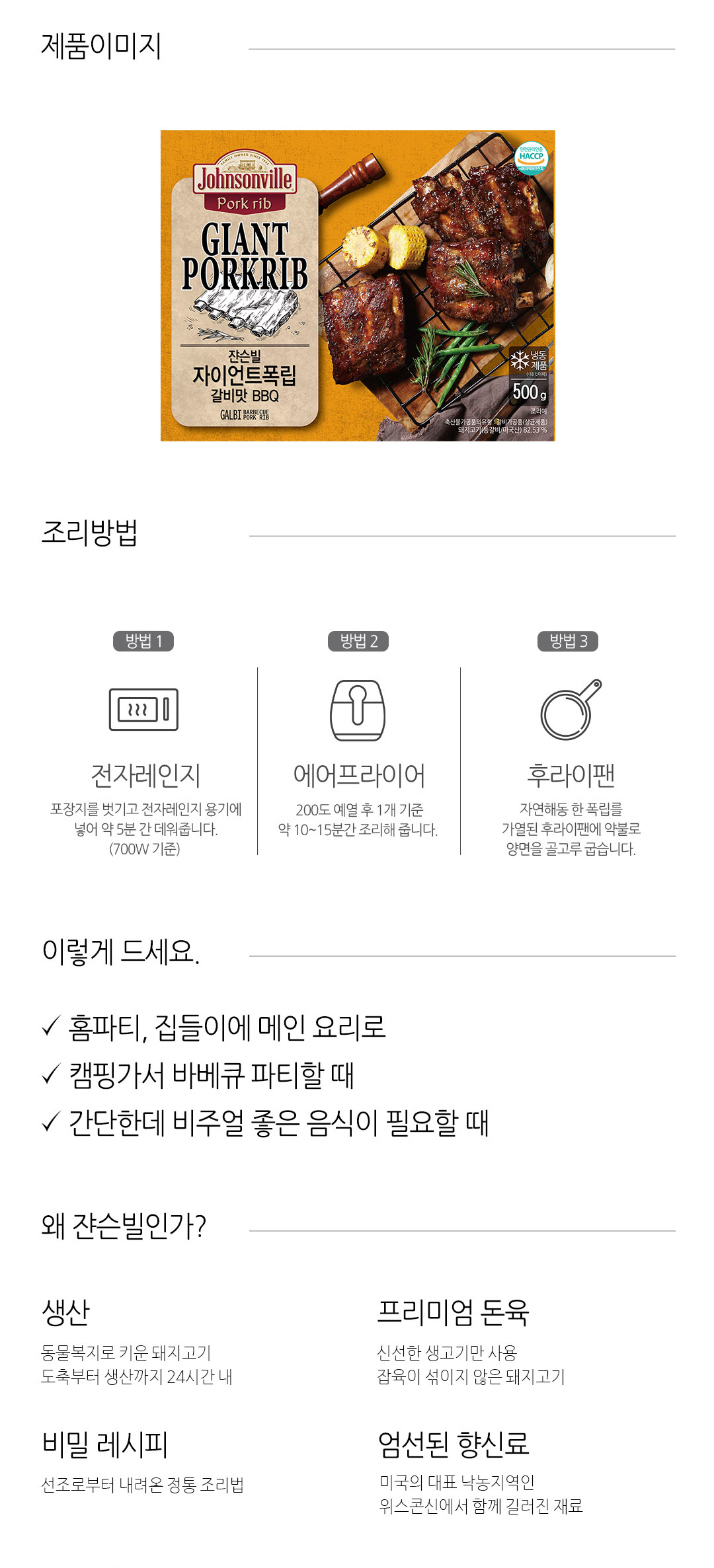 쟌슨빌의 노하우가 담긴 프리미엄 폭립| 판매가격 | 29,000원 30,900원 |