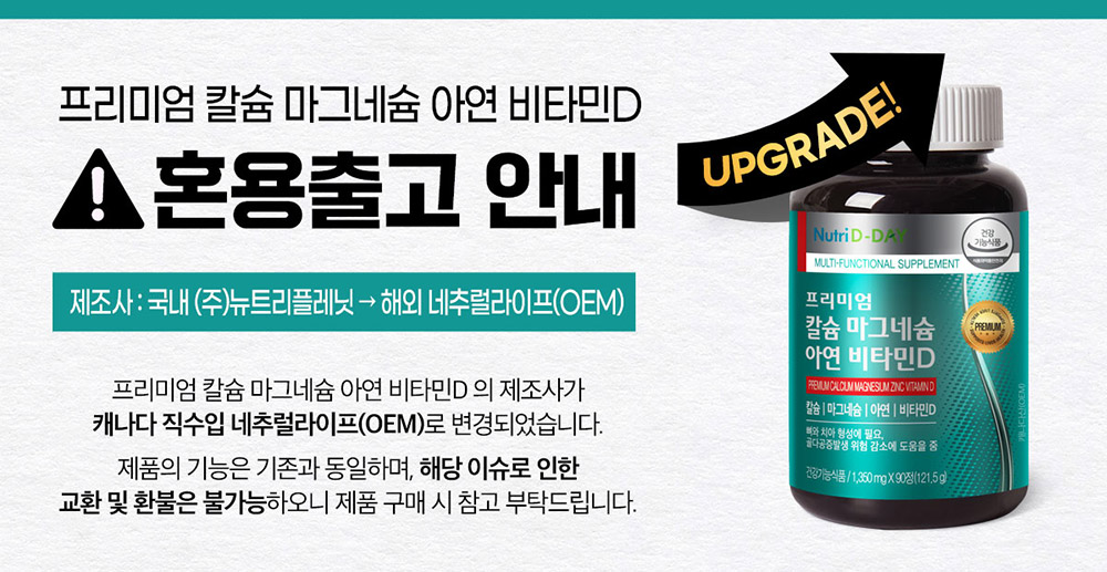 [뉴트리디데이] 프리미엄 칼슘 마그네슘 아연 비타민D 90정 1병 3개월분
