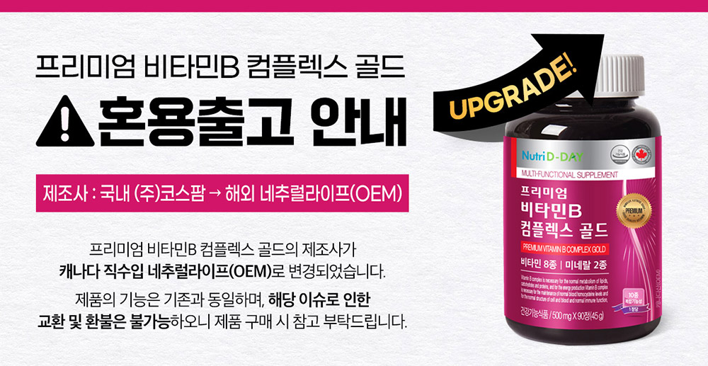 [뉴트리디데이] 프리미엄 비타민B 콤플렉스 골드 90정 1병 3개월분