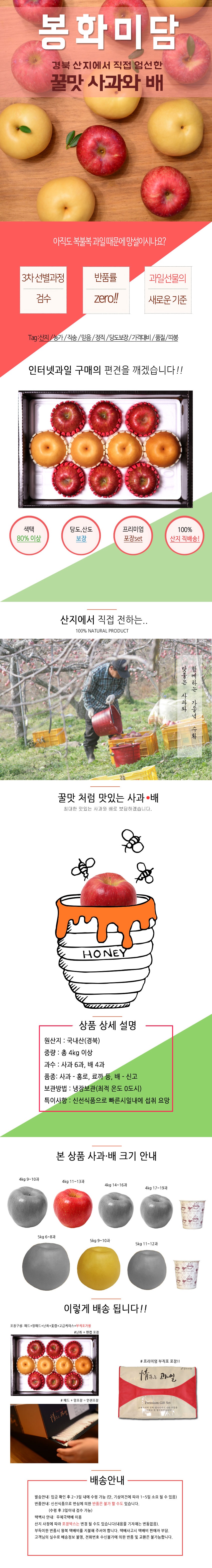 | 판매단위 | 4kg내외(사과6과, 배4과)+부직포가방 |
