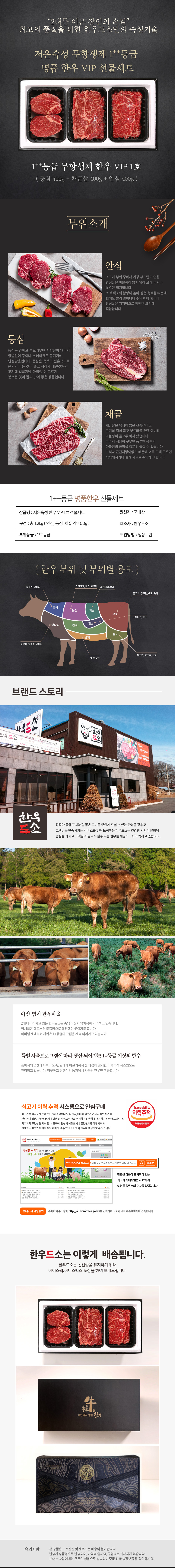 [한우드소] 무항생제 1++등급 한우 VIP 1호 [중급지함]