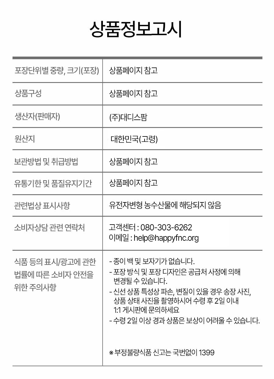 | 식품등의표시·광고에관한법률에따른소비자안전을위한주의사항 | 상세페이지참조 |