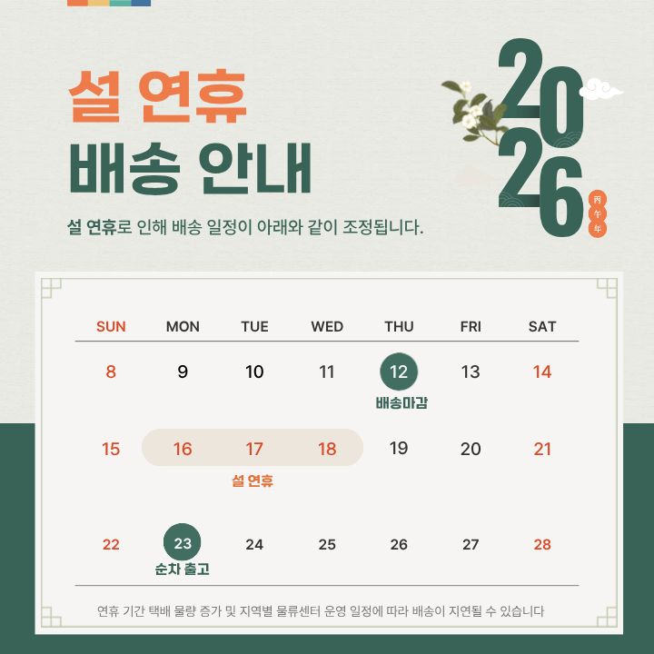 - 주말 주문량이 많을 경우 월요일 주문이 하루 지연 발송 될 수 있습니다.