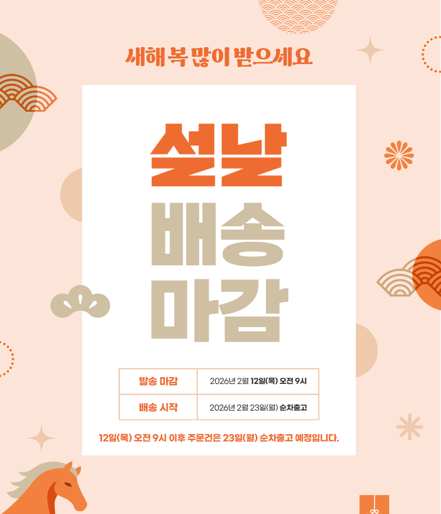 - 주말 주문량이 많을 경우 월요일 주문이 하루 지연 발송 될 수 있습니다.