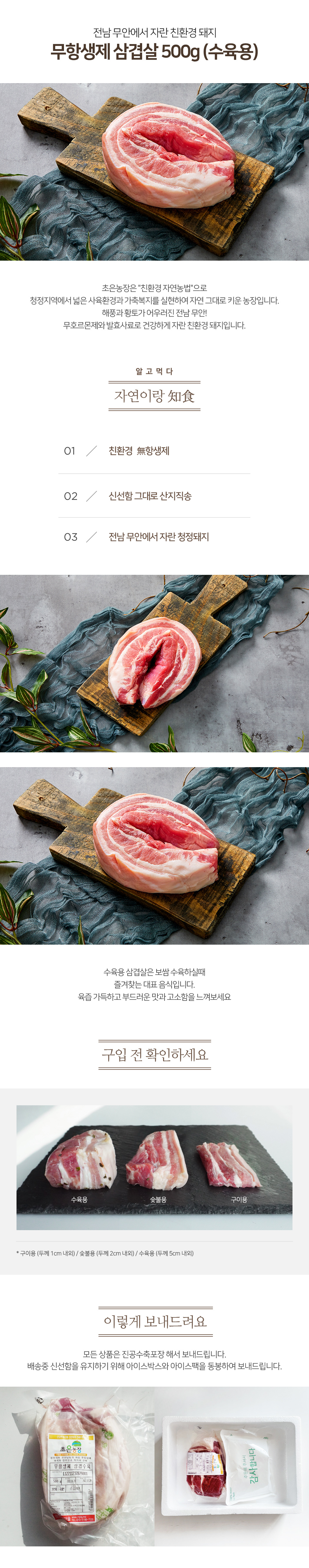 | 품목또는명칭 | 전남 무안 무항생제 삼겹살 500g(수육용) |